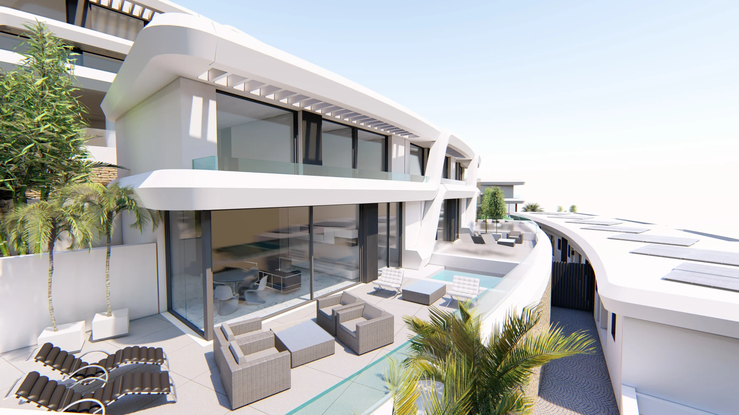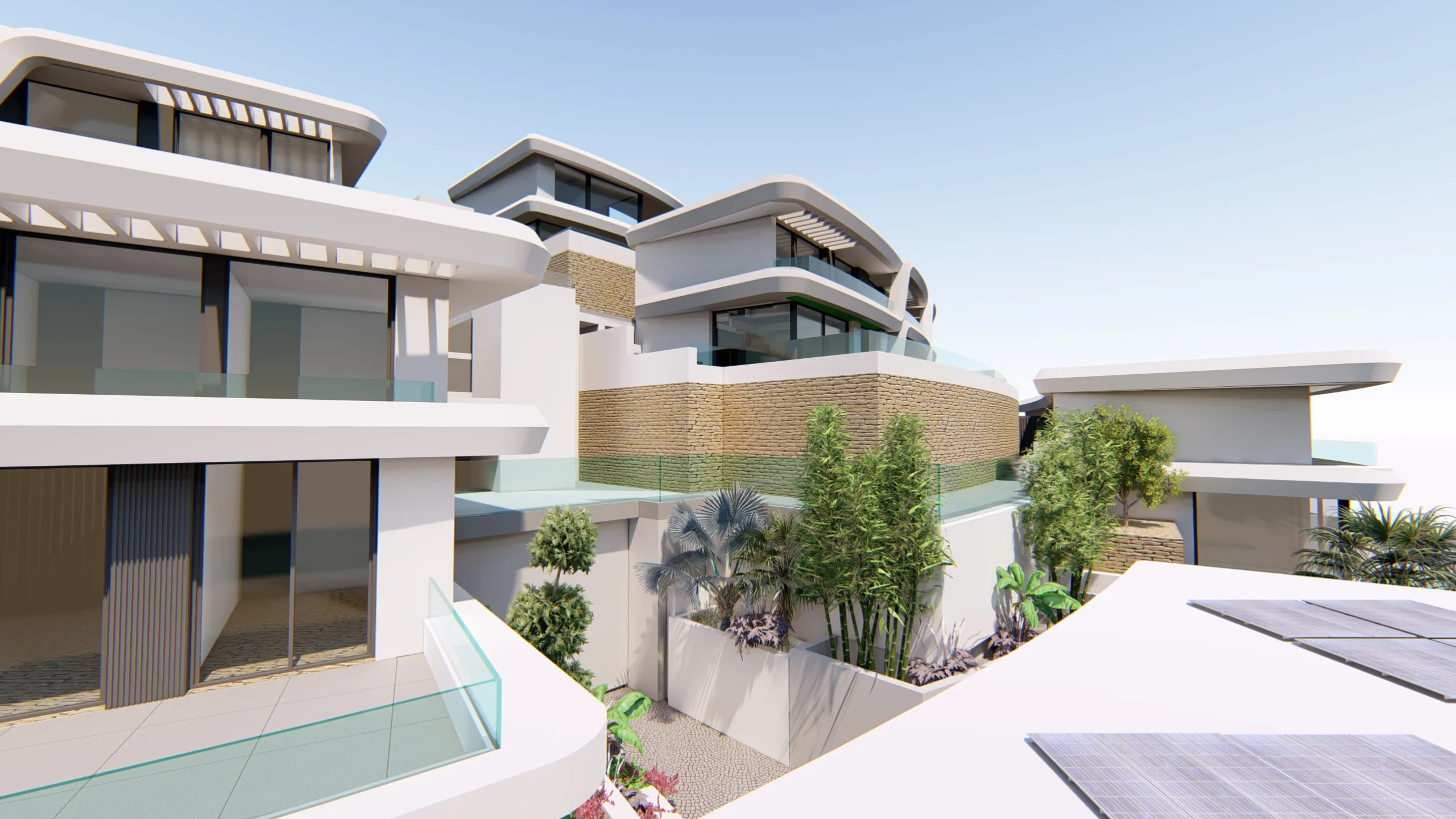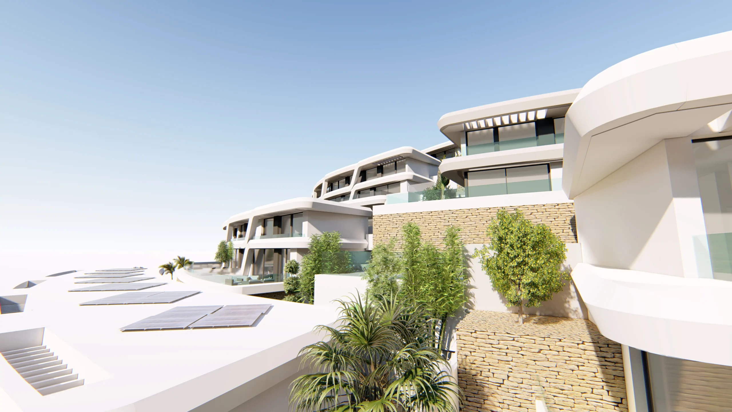 Promoción de viviendas que se encaja sobre una topografía abrupta, se adapta a la geometría del lugar y a las vistas del mar, la montaña y la bahía de Málaga. La privacidad y la calidad de espacios predomina en el diseño de este proyecto.